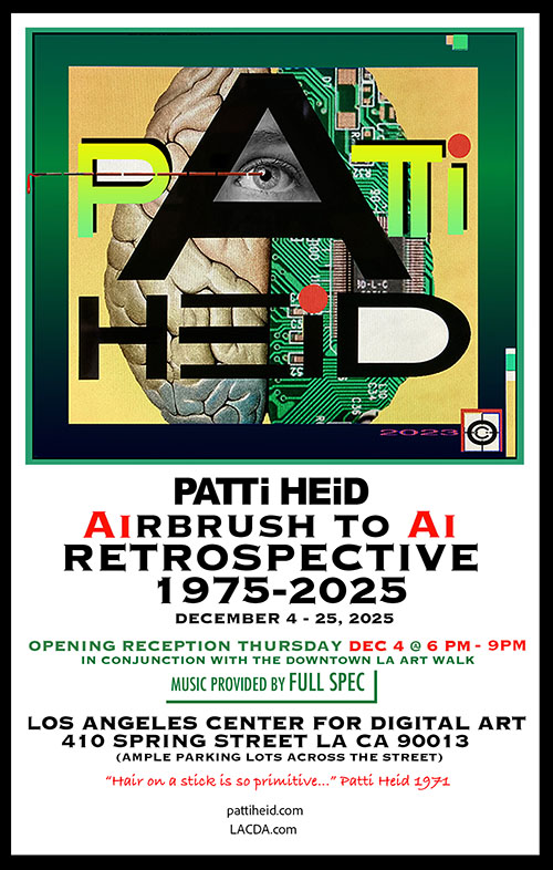 It was twenty years ago today… In.2004, Los Angeles Center for Digital Art, through the formidable energies and initiative of director Rex Bruce, opened its doors with its first exhibit. What followed is an incredible success story of hundreds of exhibits, screenings, panels, and performances that included collaborations with major curators and institutions including Centre Pompidou, The Broad, Museums and the Web, Guggenheim Gallery (Chapman University), Downtown Los Angeles Art Walk, California Museum of Photography (U.C. Riverside), New Media Center Santa Ana, Niche.LA Video Art, Silver Lake Film Festival, Downtown Film Festival–Los Angeles, photoLA, and photoSF. Curators from MoCA, LACMA, Riverside Museum, Hammer Museum, and others have participated in selecting artists for LACDA juried competitions.
